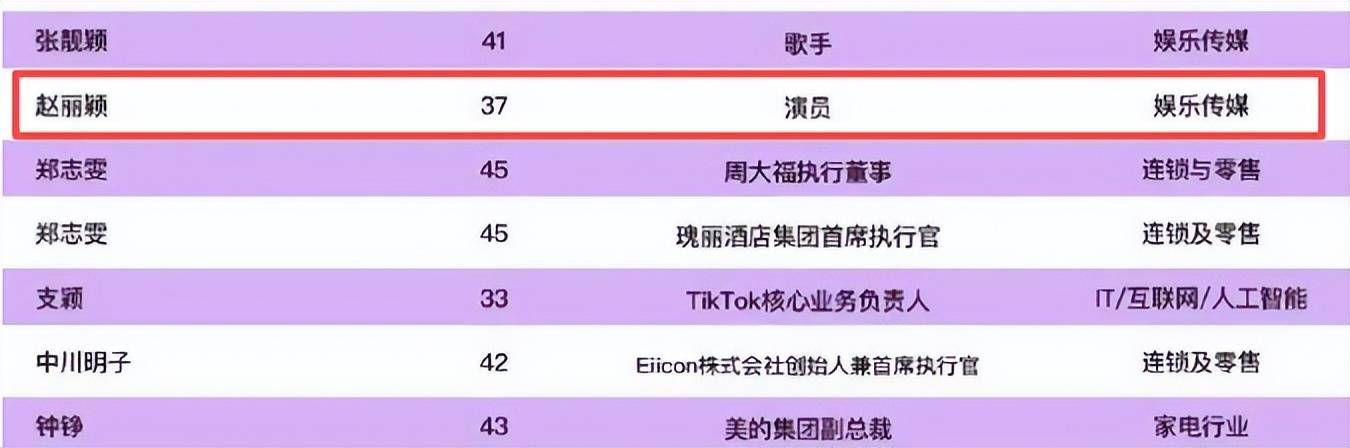 赵丽颖凭借在影视创作、文化传播等领域的贡献强势登入榜单。